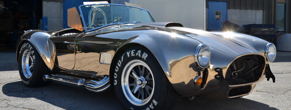 Weight: From over 2400 pounds for a car with original style suspension, brakes, differential, top loader, 427 FE iron block and heads to less than 2000 pounds with all of our lightweight options and an aluminum engine.
